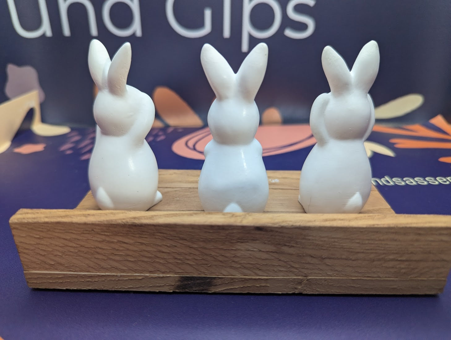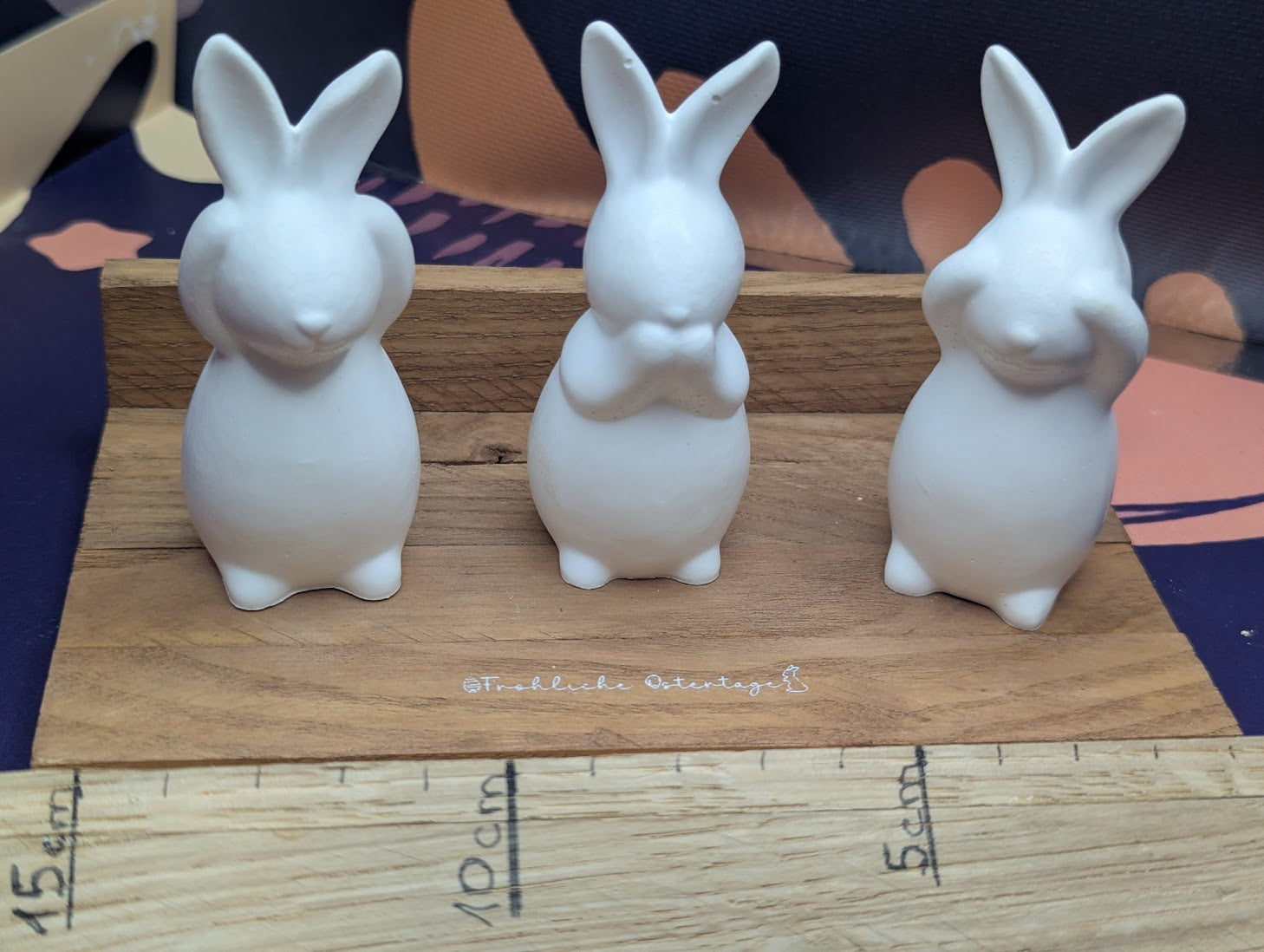 Hasen Trio auf Holz, Mitbringsel, Kleinigkeit aus Gips