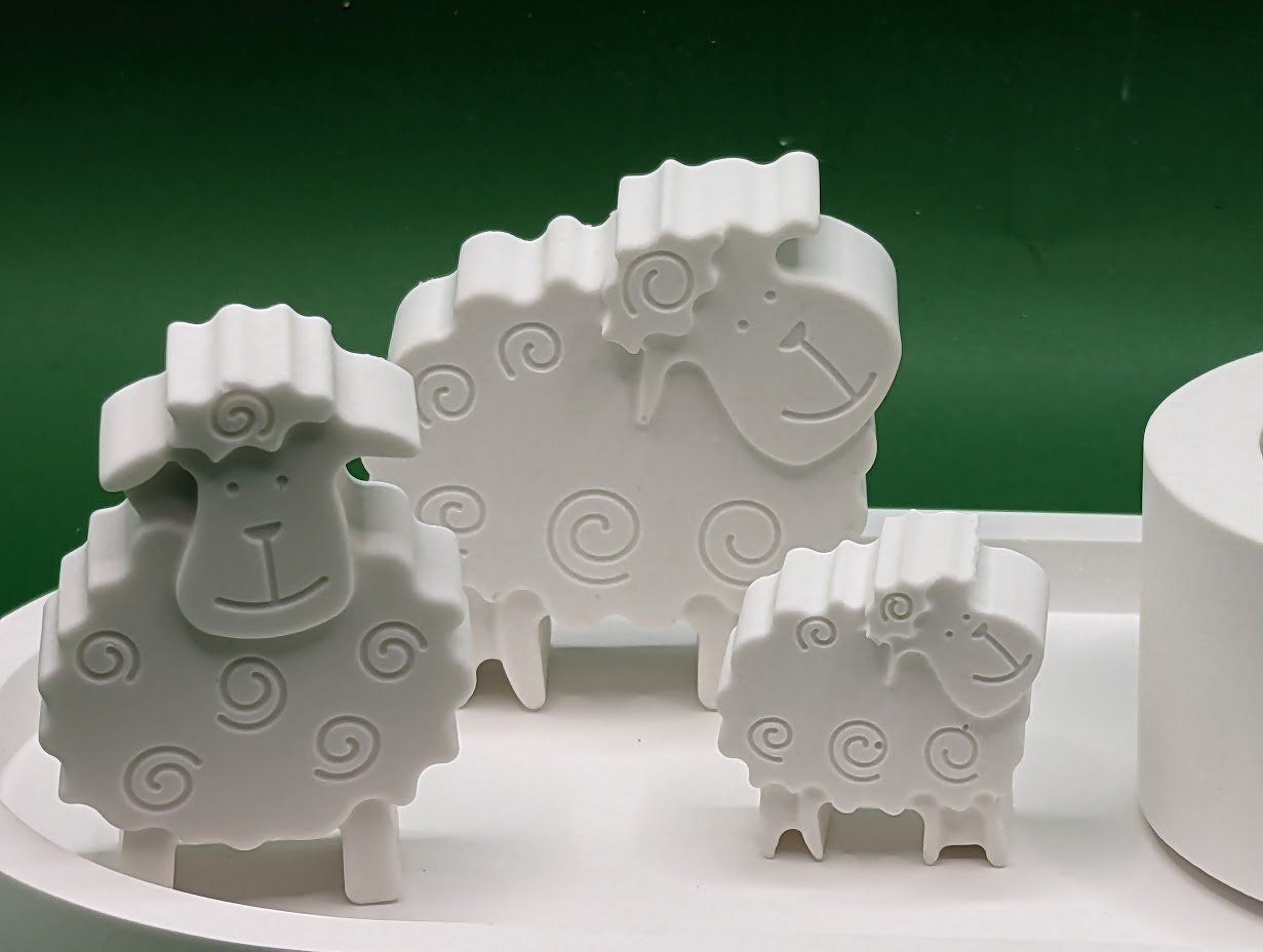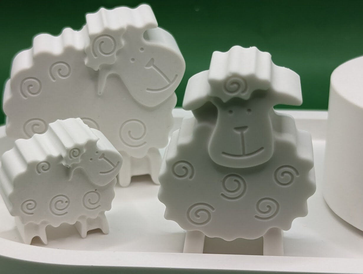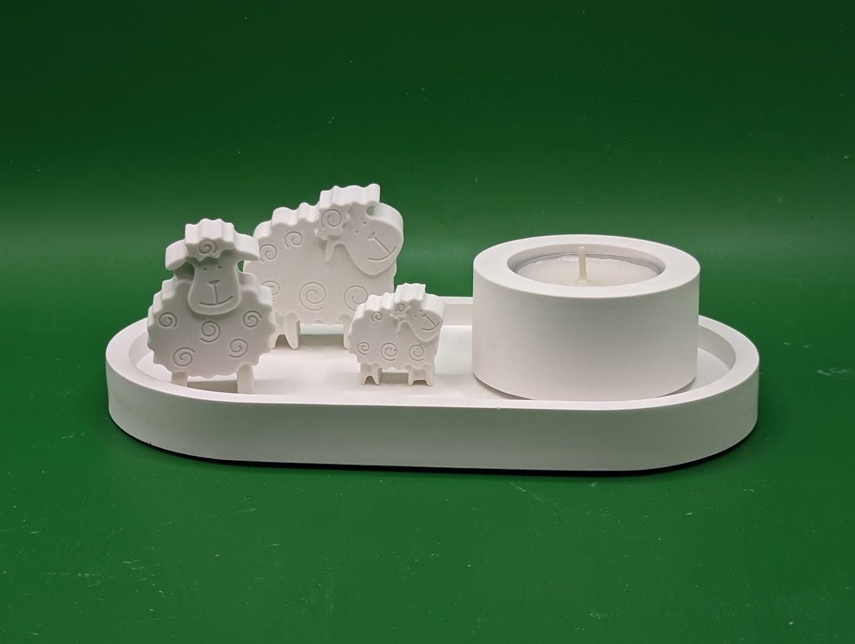 Kerzenständer Teelicht mit einer Herde Schafen, Mitbringsel aus Gips