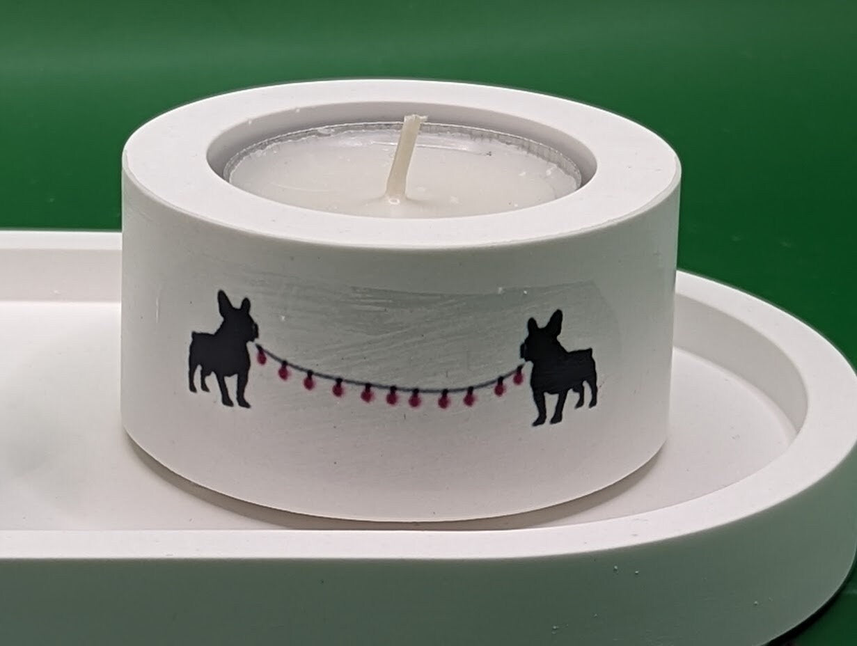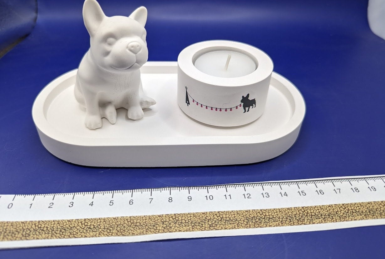 Kerzenstรคnder Teelicht mit franz. Bulldogge , Mitbringsel aus Gips