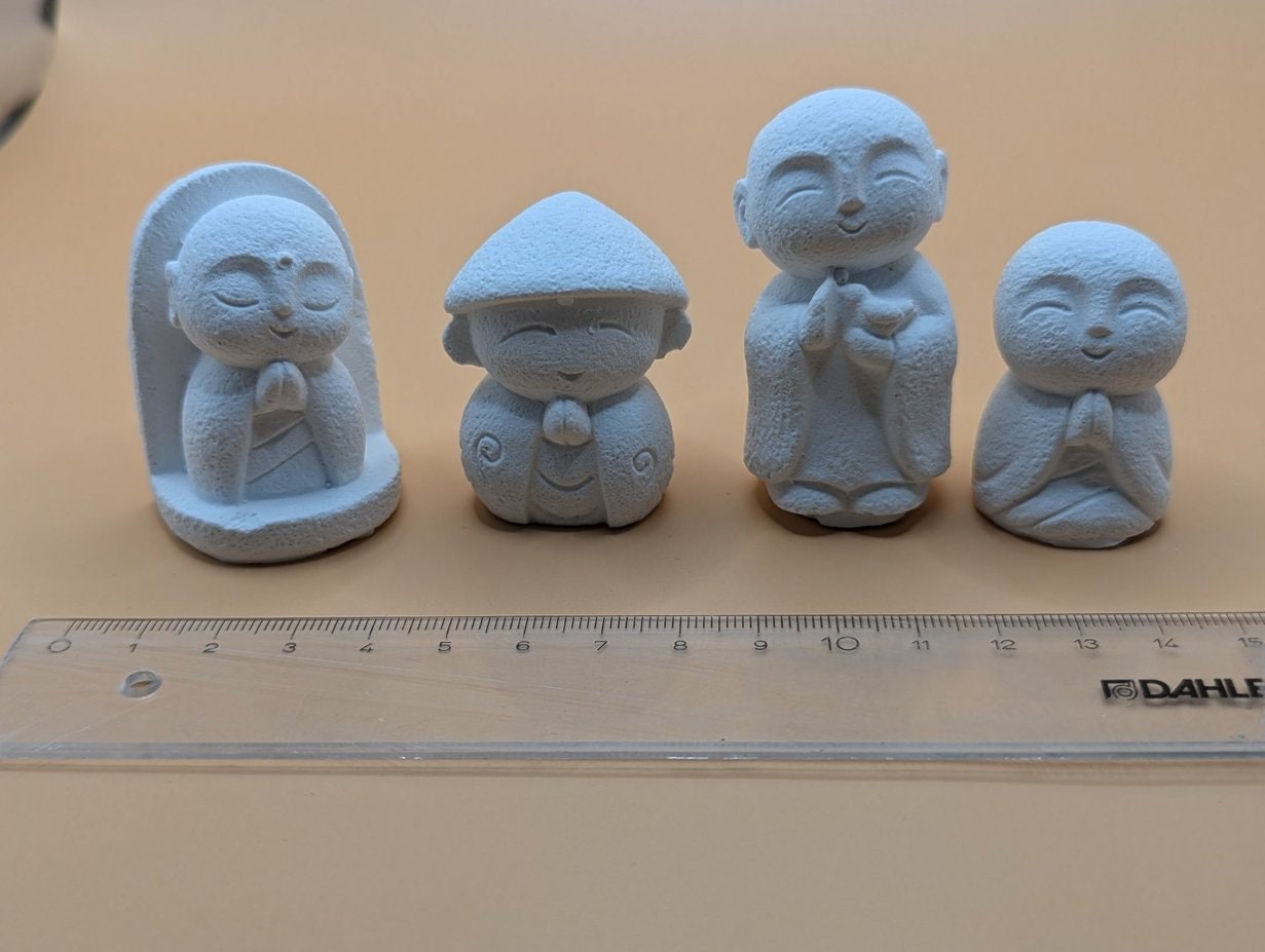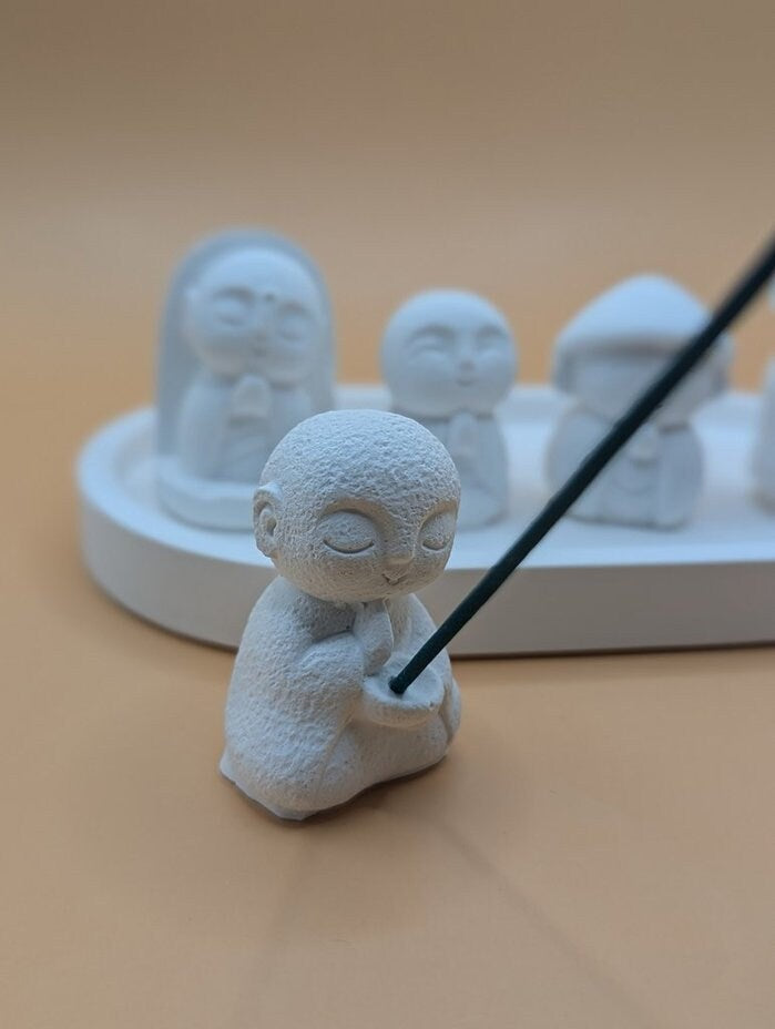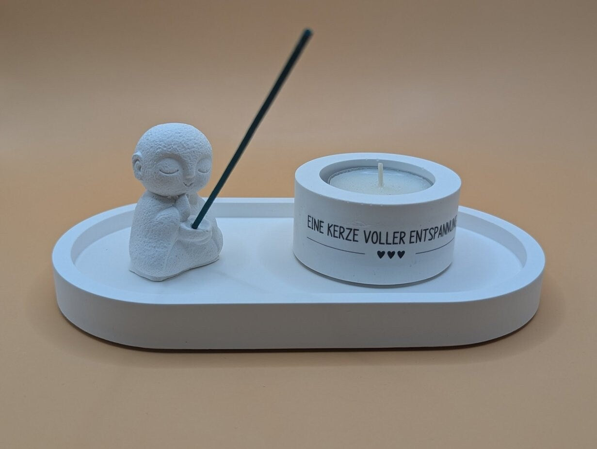 5 zuckersüße Mönche stehen hier zur Auswahl. Ebenso 5 verschiedene Teelichthalter. Das Ganze steht auf einem Tablet aus Gips. Entscheidet Euch für das, was Euch sofort anspricht.