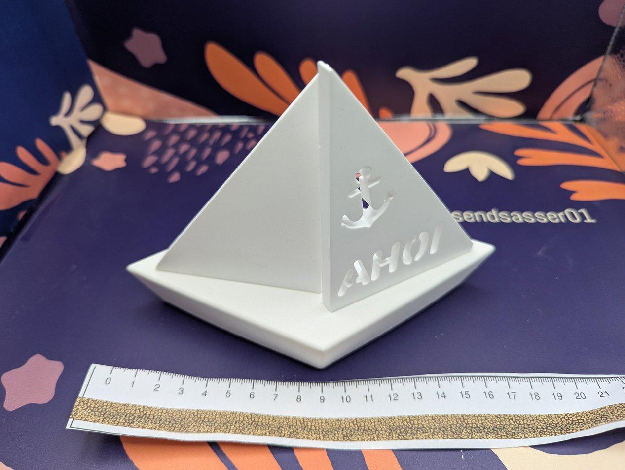 Teelichthalter in Segelboot Form, Mitbringsel aus Gips